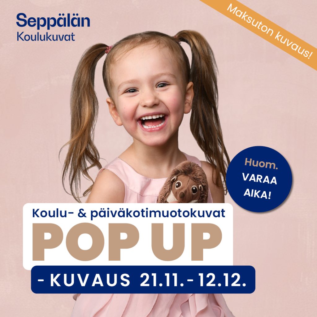 Jäikö kuvauspäivä koulussa tai päiväkodissa väliin vai haluatko uudet kuvat muuten vain? POP UP -kuvauksessa käyt kuvassa helposti ilman ajanvarausta vaikka koko perheen kesken!